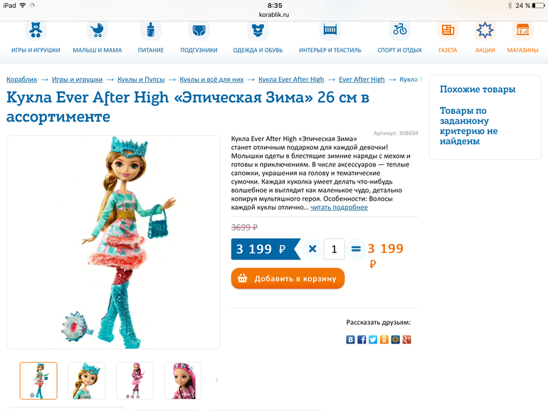 Распродажи. Скидки. Акции.Ещё вчера 3 куклы из серии Заколдованная зима бронировались по. 2999 руб (+1 в подарок), а сегодня утром цену поменяли на 2499 руб! Мелочь, а приятно))) По 1250 руб. получается кукла (вместо 3699).