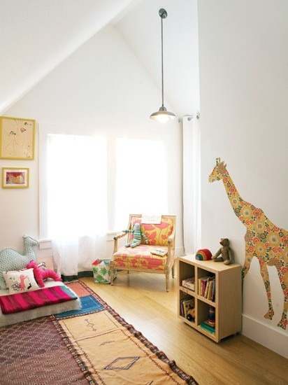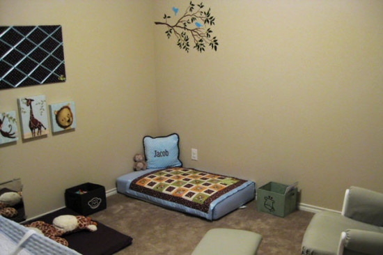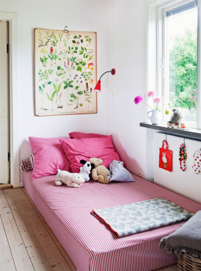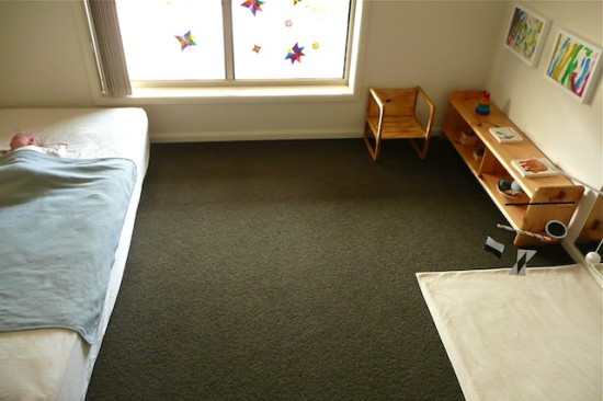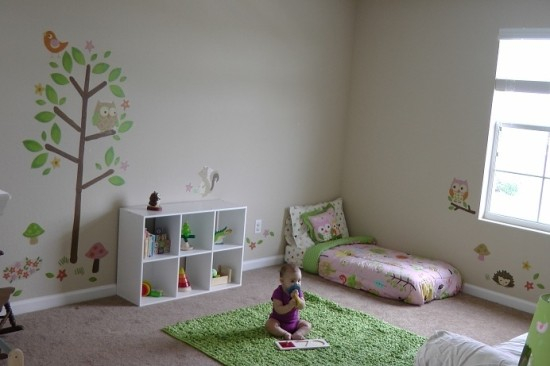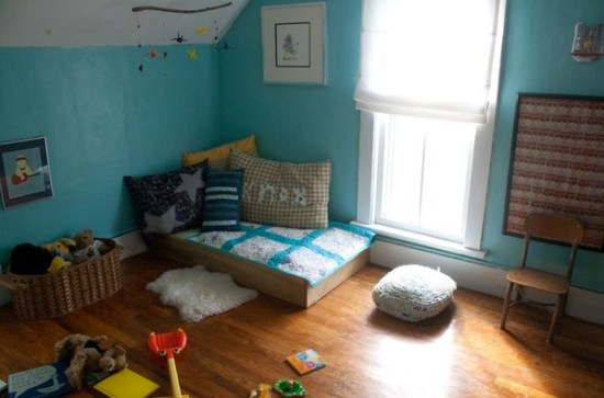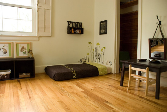 Читая статьи про детские комнаты по принципам Монтессори, очень понравилась идея про детское спальное место - просто высокий матрас на полу (для малышей старше года).