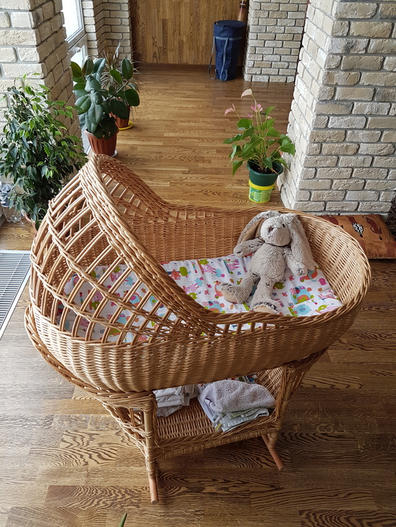 Плюс экологичность. Она лёгкая и удобная. Моя мама пошила в неё матрасик. Занавешивать разными бортиками и балдахинами даже не хотелось. Бабушка бурчала, что ребёнок у нас спит в какой-то корзинке)) Ну пускай так, зато как классно!) На ночь лялечка перекочевала в неё же.