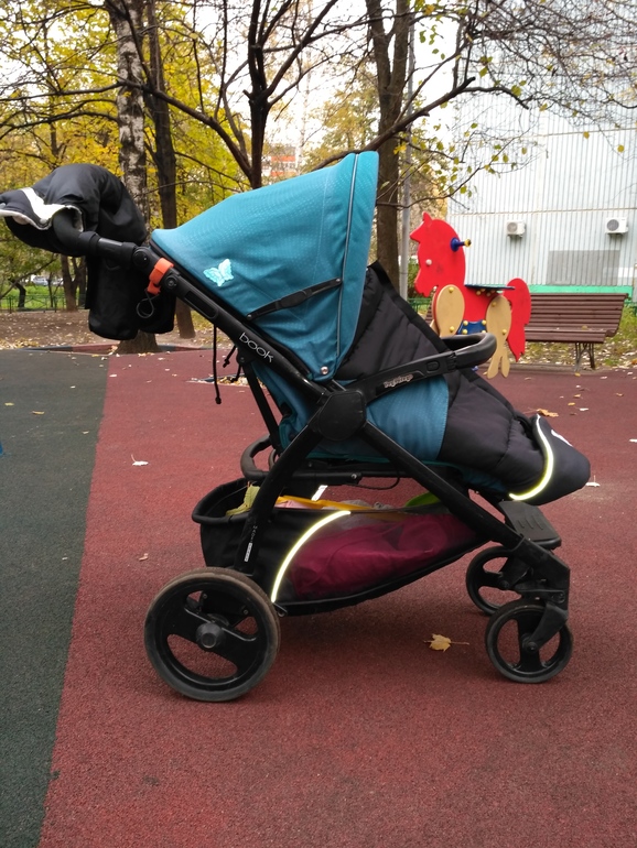 Это не брак коляски. У меня то же была Пег Прего Бук Плюс так же дочь съезжала и висела на ремнях, поэтому продала. Конверт у меня buggysnuggle. Дочь ростом примерно 77-78 см запаса полно. До роста 92 точно хватит.