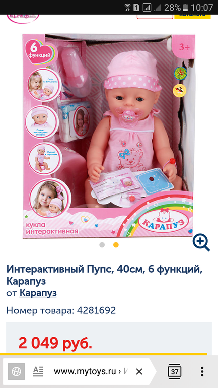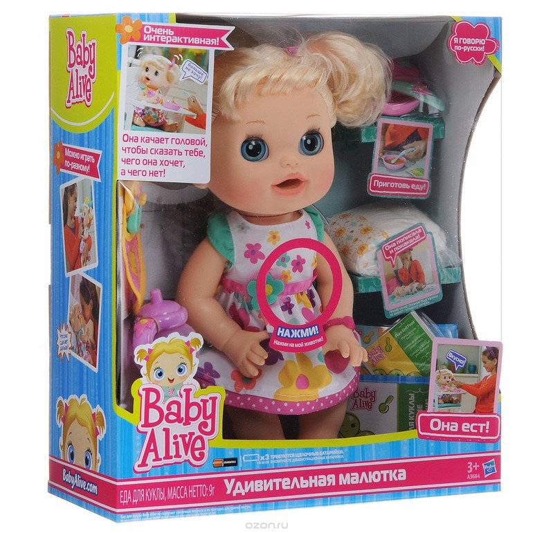 По мне да,да и ребенку она больше нравится.У нее так же есть горшок,подгузники,кашка,бутылка,только она еще говорит много фраз.Глазки закрываются.На майтойсе тут по акции 1300 была с протоколом.Мы 2500 летом брали посмотрите видео на ютубе,удивительная малютка у нас!