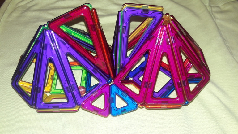 Магнитные конструкторы интереснее. Каждый раз что-то новенькое. Пока не встречала детей, которые бы остались равнодушны. хотя я ожидала меньшего, а оказался клевой игрушкой, постройки хорошо держатся, можно и башни делать, а можно выложить на полу конструкцию и поднять за одну деталь и будет мяч или другая объемная фигура