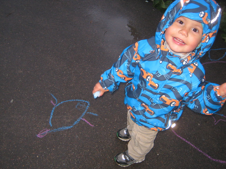 Какое пальто, конечно, комбез непромокаемый))) Пусть развлекается по полной))))