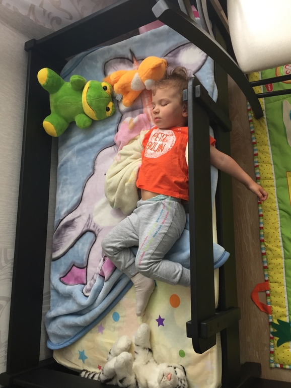 Тоще думаю о замене, по длине есть запас, но дитё не спит гвоздем, а крутится вертолетом и застревает просыпается( какой следующий размер дет кроваток?