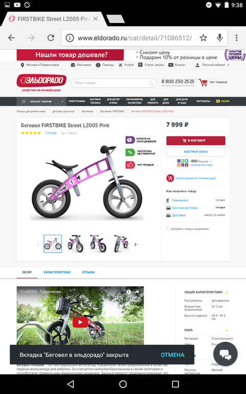 И у нас беговел этой фирмы из эльдорадо, только расцветка для мальчика, мы очень довольны. Дарили ему на 3 года, он так на нем рассекает!!!