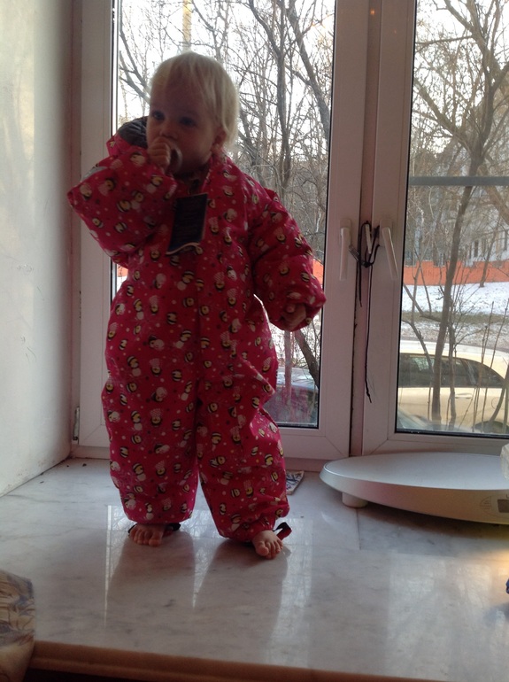 Комбез на худого ребенка. Не широкий. Керри и Хуппа гораздо шире. И не большемерит, как мне показалось. Хотя у дочки в рукавах запас хороший.
