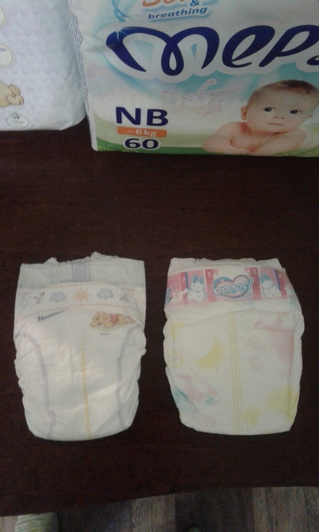 При изучении ассортимента подгузников для будущего ребенка стала изучать информацию по ним, читала отзывы и смотрела видео. Девченки говорили что памперсы Мепси маломерки, купила паску Мепси НБ и Хагисы 2 для сравнения качества и размерности. Мэпси очень удивили своим качеством, мягкостью, даже муж сказал что они гораздо мягче чем Хагис элит, точная копия Мэриесов, но в отличии от Мэриес имеют резиночку на спинке. Фото прилагаю ниже, может камуто пригодится.
