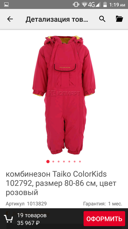 Хотели сегодня в дм купить комбез Toka Trible, вписывается в наш бюджет, написано, что он до -20, хотя показался он мне не очень плотным, но в целом понравился (р.86).