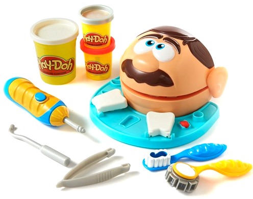 Мистера зубастика покупали сыну в 4 года, ему очень нравился, дочке сейчас почти 2, она его еще не понимает. Мне кажется в этом возрасте им интересно просто побольше пластилина, формочки разные, скалки, например наборы где нужно печенье, морожное, пирожные делать..