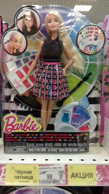я вчера тут на бб прочитала про сегодняшнюю барби, зарезервировала в дм, который в центре, сегодня без проблем отдали за 99, хотя сначала пробили по 1500