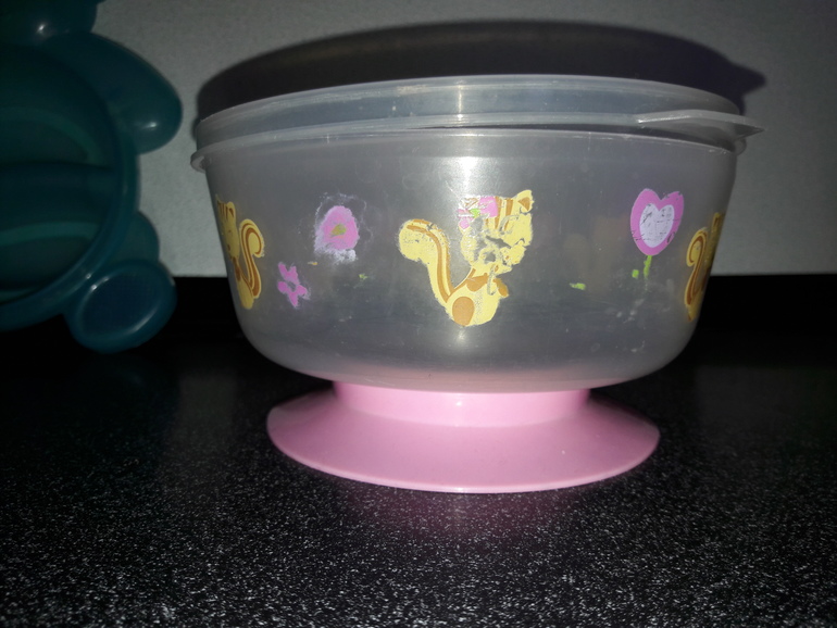 вторая тарелка "сказка" на присоске,глубокая и с крышой-вроде бы все хорошо, но со временем (5-6мес) рисунок начал стираться и стал липнуть к рукам,фууу,как лак для ногтей невысохший.