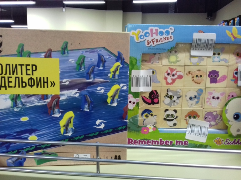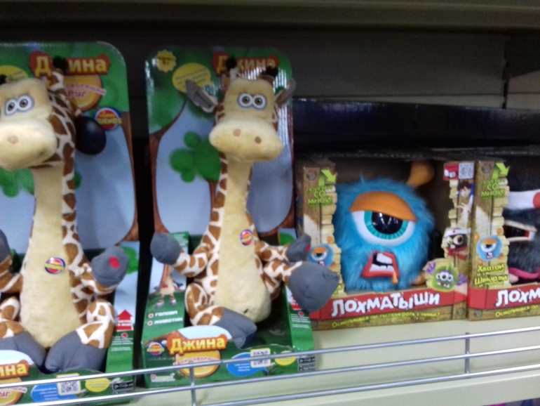 Сейчас в любом магазине в период распродаж такая картина))) я,например, ыотографировала еще и для подруги,они искали настолки и лошадку,которая ходит и ржет) у нас в Фамилии их много оказалось и всего 800рэ
