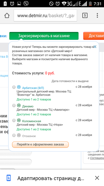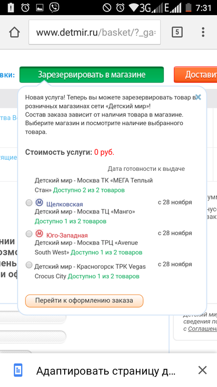 Пункт самовывоза точно нет,там только отказаться можно от позиций,они к детскому миру не имеют отношения.