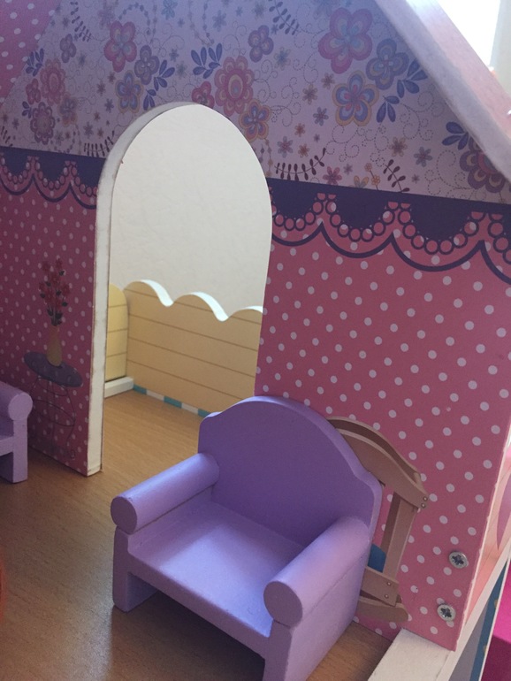 Наш домик больше по размеру, 123 см в высоту, для кукол ростом как барби, 30 см. Мебель по размеру как раз для кукол такого роста. В ваш домик она очень большая будет.