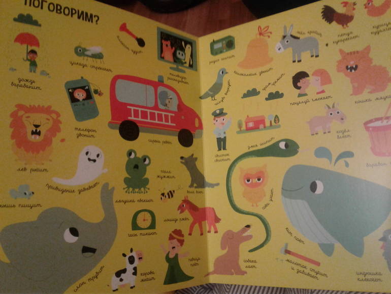 конечно не угадала с возрастом но мужем весело смеялись над звуками .листы плотные не картонные. На каждой странице нажимаешь на кружочЕк и слышишь пук апчхи и тд..вобще забавная обучающая книга