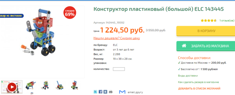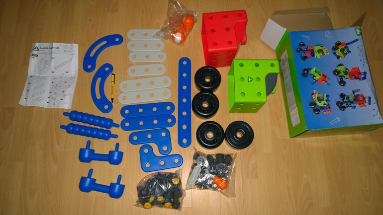 Заказала, поеду забирать сегодня из магазина, только самовывоз не из всех, закончились что ли... а вообще посмотрела видео, так он огромный! поэтому решила брать, шанс, что все шурупы и детали растеряются ниже гораздо. может и детям больше понравится с ним возиться.