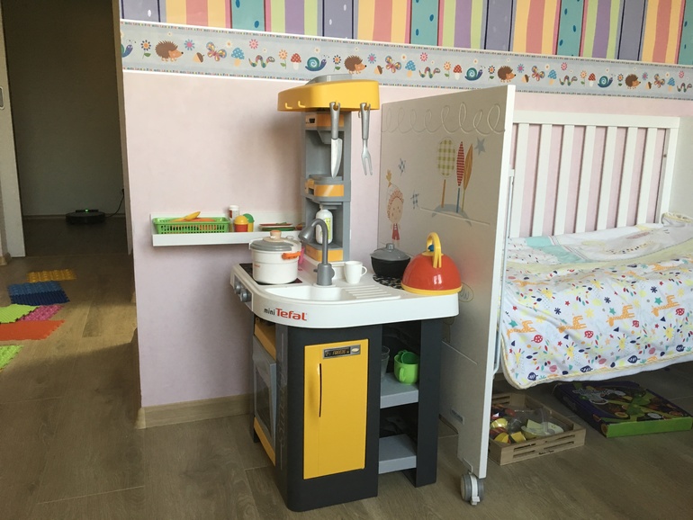 Еще одно достоинство - достаточно высокая (около 98 см, если не ошибаюсь, мы тоже искали повыше), при этом компактная. Кухню из Икеи тоже рассматривали, отказались из-за ее габаритов, для нашей детской очень широкая, у нас мало места.