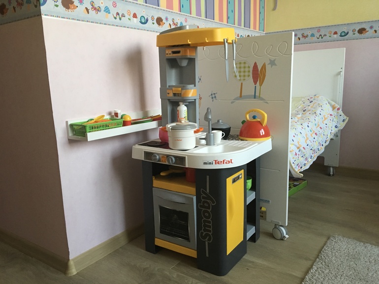 Прилагаю фото, кухня стоит рядом со стандартной детской кроваткой, чтобы вам посмотреть размеры.