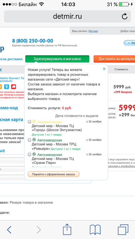 Смотрите) первое фото это как раз резерв(и тогда без проблем куклу пробьют по 99 р, а вот когда выбираешь забрать из магазина (второе фото) то это то же самое что и пвз