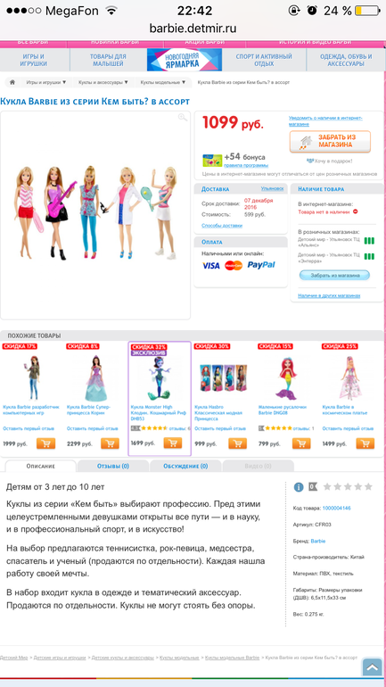 Сегодня видела barbie со скидкой. Не 90%, но тоже хорошей, особенно для подарков. Дм оффлайн магазин 599 руб