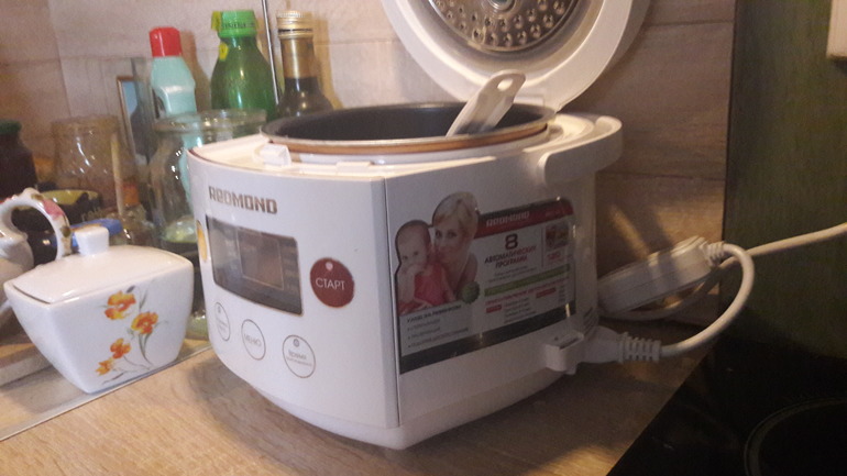 Есть и большая, на 4 литра. Тоже редмонд с керамикой, ей уже года 4, но редко в ней готовлю - муж не любит, говорит вся еда в ней одинаковая на вкус))) придирается. А маленькую везде за собой таскаю: на дачу, в отпуск
