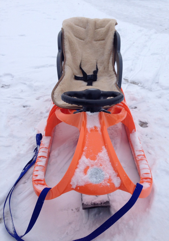 UPD. Опробовали санки на снежной горке - класс! Рома сидит спереди и держится за руль, а я сзади (да, попа помещается пока😂), упираясь в спинку.