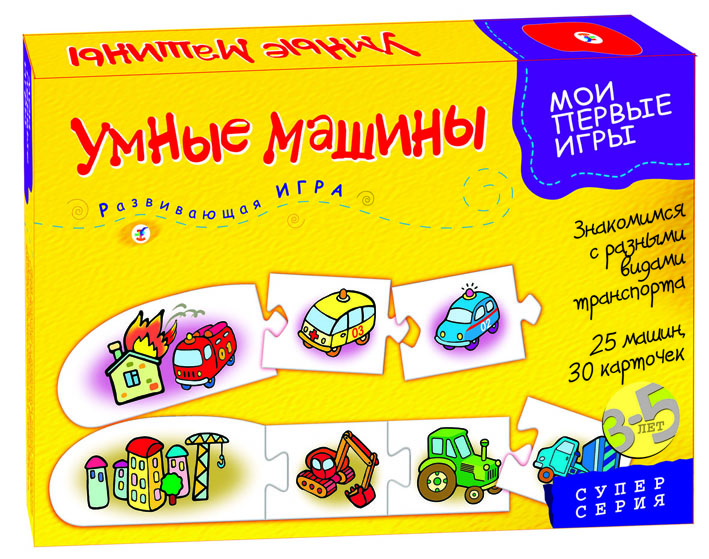 Настольная игра-пазл "Умные машины" серии "Мои первые игры" Дрофа-Медиа посоветовала моя мама-воспитатель. У нее в группе 3хлетки с огромным удовольствием в такие играют, только версии игр старые: немного иные рисунки. Хороший плотный картон, яркие рисунки. У каждой линии своя форма пазла и ребенок не засунет не то не туда, что хорошо при самостоятельной игре.