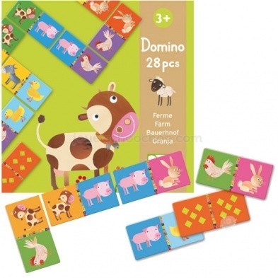 И двухстороннее домино от DJECO с животными. Считать нам пока рано, начнем с животных. Качественный плотный картон, яркие рисунки, упакована в забавный кубик-коробку.