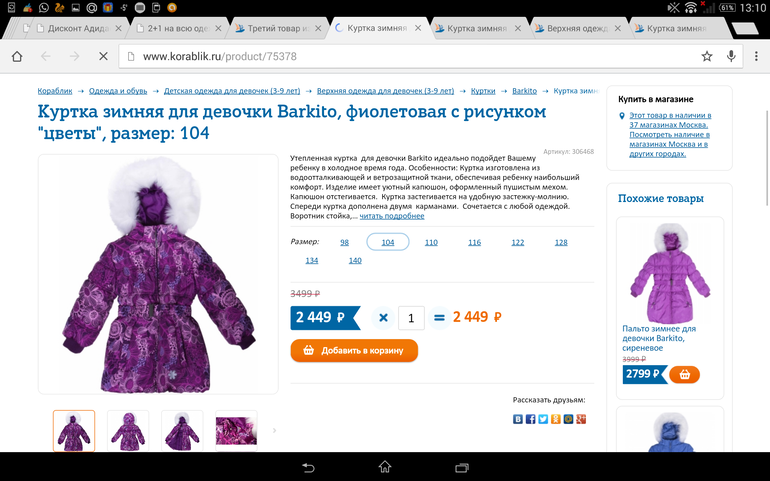 Детская одеждаДевочки,мне нужна одна куртка зимняя Баркито (утеплитель 350гр). С двумя прокодами выйдет в 1460р. КОМПАНИЮ НАШЛА)
