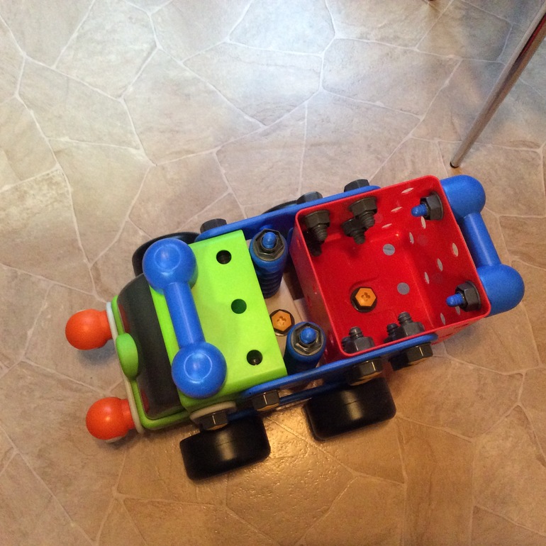 Сфотографировать детали я не успела, да и готовую машинку ребенок забирает. Просто для примера хочу показать, что пластик намного более красивый, чем на фото на сайте. Примерные габариты машинки 50*27*27см