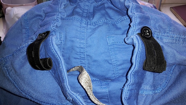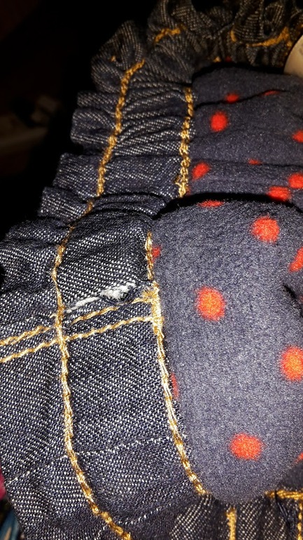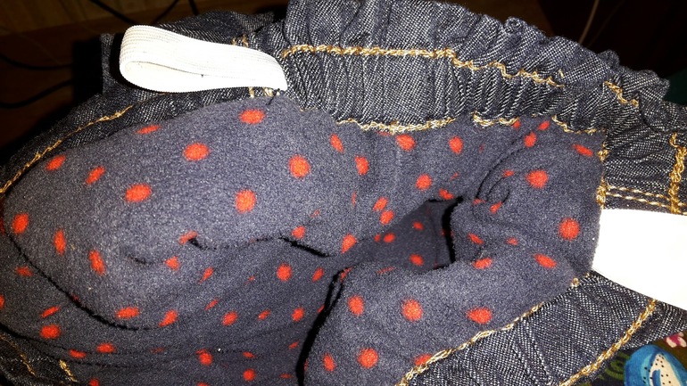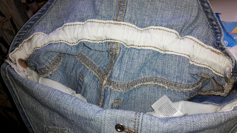 Почти во всех штанах есть регулируемая резинка по талии. НО, я столкнулась с тем, что не везде у ошкош она есть, и тем более ее нет в джеггинсах. Они это продумали и везде сделали "дорожку" для того, чтобы вы сами могли вставить эту резинку. Где-то резинка есть, но недостаточно затянута - не проблема, делаем надрез и вытягиваем резиночку, зашиваем и убираем обратно.