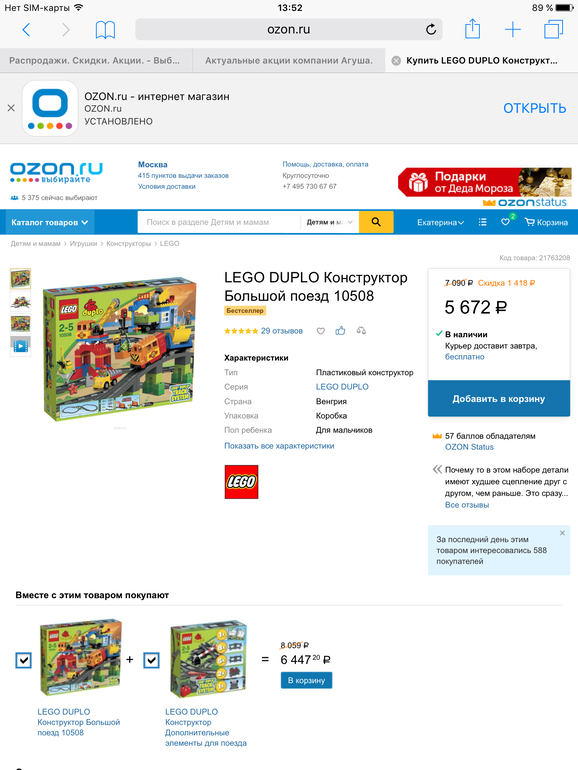 Уже прикупила))) за 4814))), так курьер при детях открыл, проверял. Теперь старший места себе не находит. Ждёт Нг.)))