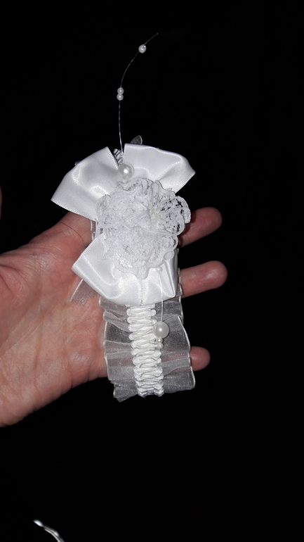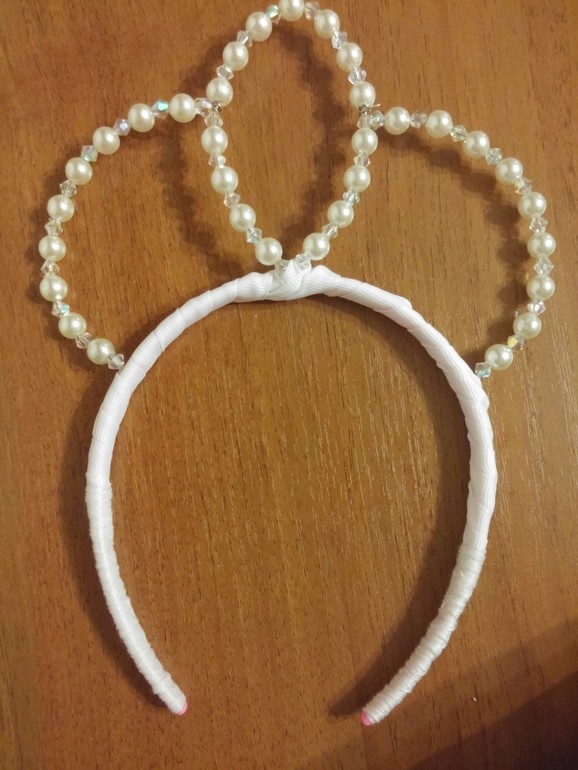 Я его слепила из того что было -) Розовый ободок, белая лента, белые нитки, бусины и мемори-проволка.