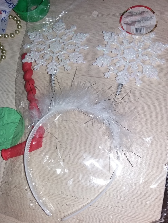 я купила белый ободок, оторвала от него декор и вместо него наклеила снежинку из fix price