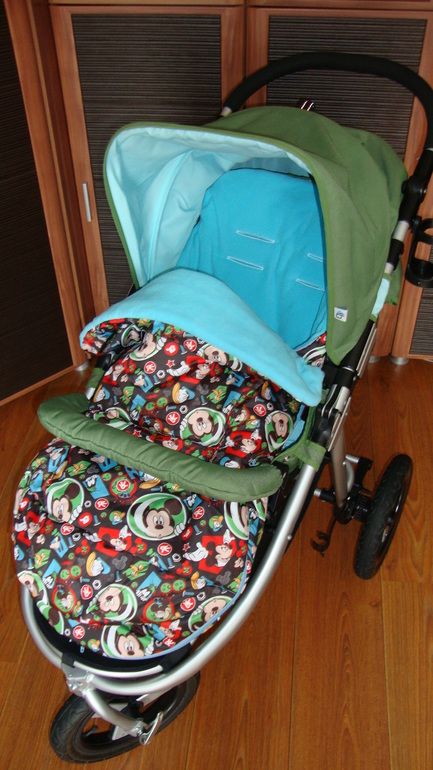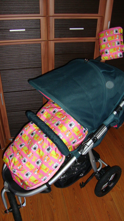 Про однотонный тоже думала. Он хорошо подходит к коляске? Есть у вас фото?