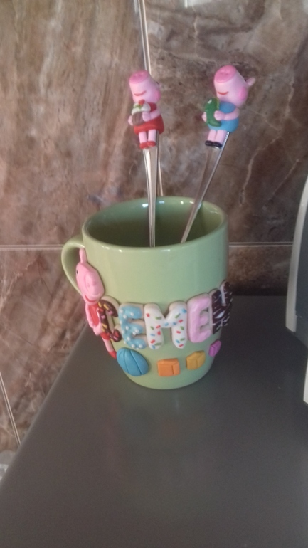 сыну очень понравились ложка и вилка с пеппой и Джорджем из полимерной глины ,а также такая же именная кружка,ну и самое главное это очень практичный подарок в любом возрасте, и фигурки можно сделать любые естественно 😉