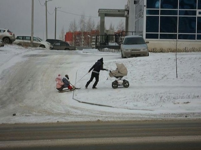 1. Старшая на беговеле, младшая в слинге/коляске. Самый удобный вариант - летом только так и бегали. Но сейчас возникают трудности достаточно часто: то сильный ветер и старшая не хочет ехать, потому что холодно и тяжело, то снегу наметет много и по сугробам особо не погоняешь. В итоге я тащу на себе еще и беговел. Я уже здесь спрашивала по поводу лыж на беговел, но девочки сказали, что имеет смысл только для катания с горок - по ровной поверхности тяжело.