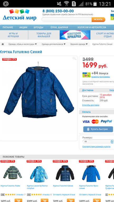 Детская одеждаВзяла сыну куртку в ДМ Futurino, вот такую.
