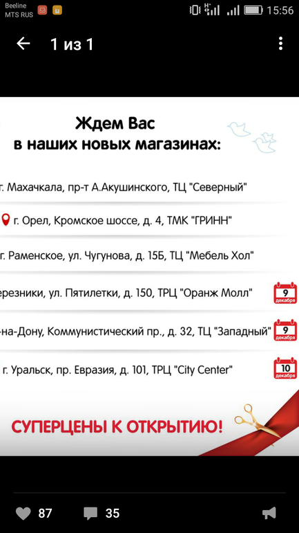 г. Домодедово открытие было 28 октября! извините но хрен нам какие цены скинули!!! ни каких акций, ни каких скидок! тоже губу раскатала, побежала