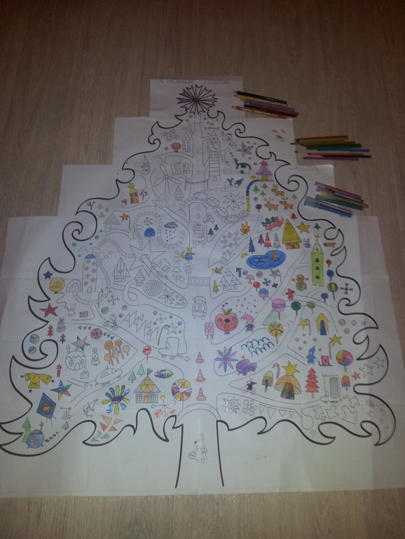 Скачали еще вот такую елку-раскраску(22 листа формата А4)