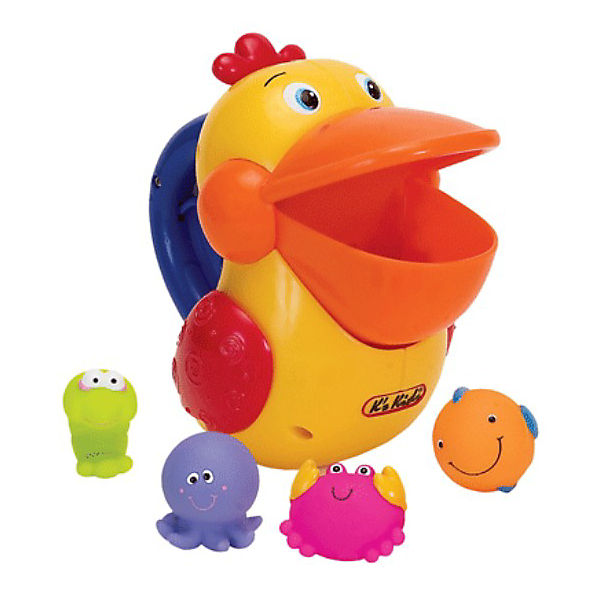 у кс кидс есть голодный пеликан. специально для ванной. его нужно накормить рыбками, клюв закрывается, хлопает крыльями и пр. веселимся от души))
