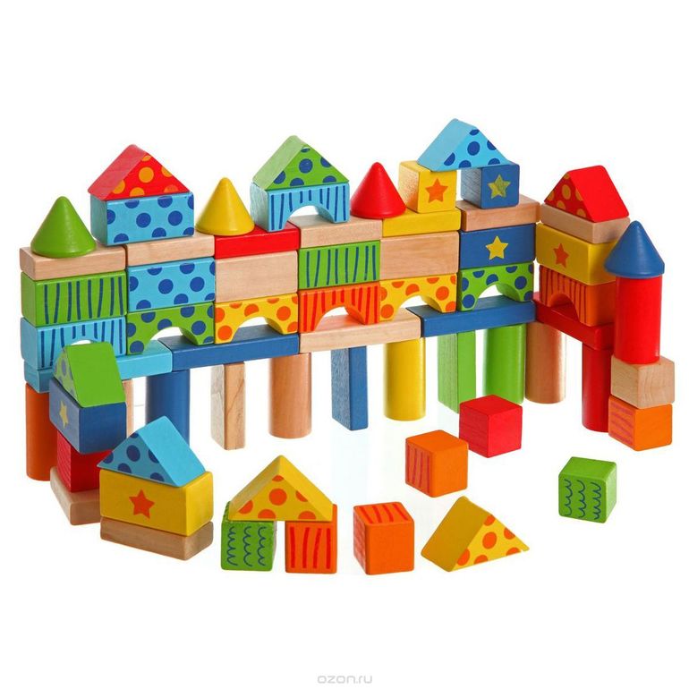 Большой набор красивых кубиков из дерева и машинку со звуковыми эффектами.