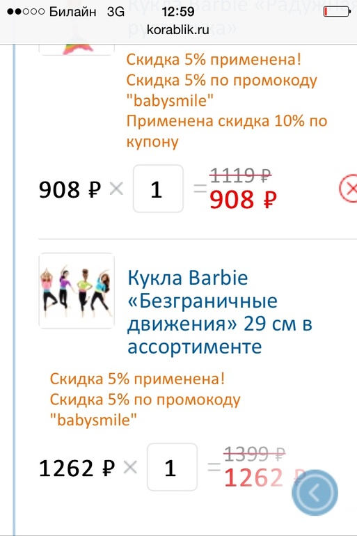 А бэбисмайл на все действует? Что для этого надо? Регистрацию? Кладу в корзину две игрушки фишерпрайс, ввожу бебисмайл и ничего не происходит... почему?