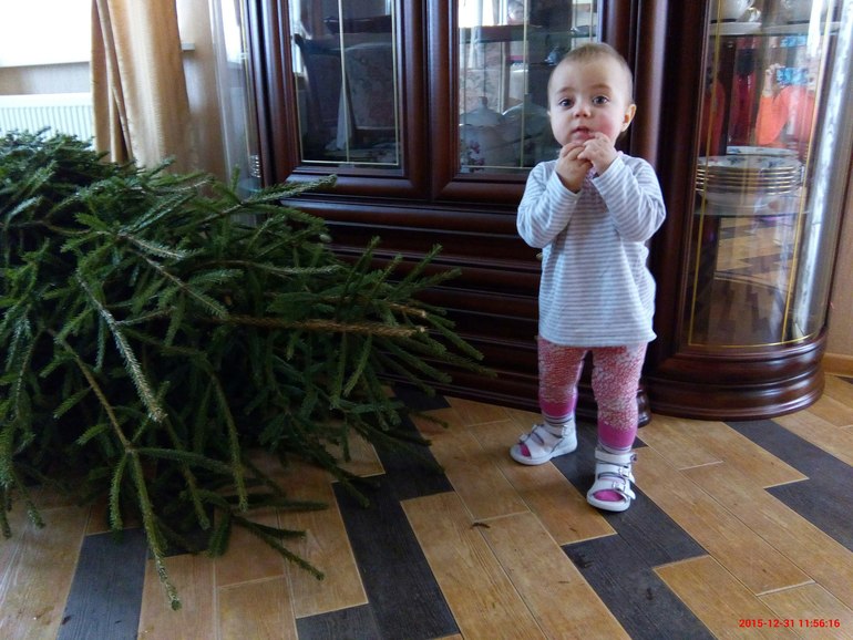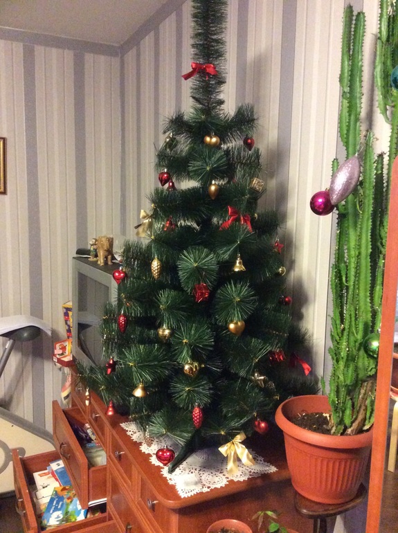 Отличная ёлка! У нас в этом году без стекла (не считая макушку и шарик самодельный старшей дочки): икеа и фикс (сыпятся жуть).