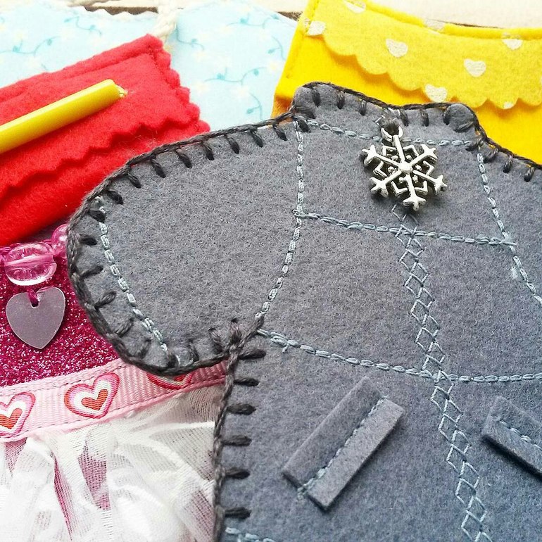 Ага, сама кукла из велкроткани (заказывала из Питера:))), в Москве не сыскать), это мягкая часть липучки. Плюс два слоя розовенького фетра. Получается кукла и гибкая, и ничего с ней не сделается, мы ее и купали даже :). А одежда из фетра, всякие бусины, пуговички, ленты и т.д., чтобы ручонки все трогали да мелкая моторика развивалась. Фетр тоже разный использовала - и мягкий, и жесткий, опять же для разных тактильных ощущений. Для нарядного платья принцессы брала фетр с блестками (не крошатся) и тюль (остатки от икеевских занавесок). Для меня самой было сначала откровением, что дочь достает ее часто сама и пока, как умеет, наряжает :)