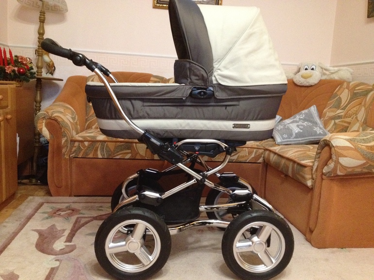 Коляска как коляска. Большая и тяжелая. зимой ещё куда ни шло, а летом (( есть и полегче варианты на классическом шасси. Со средним меня хватило на месяц. 3 или 4 колесные скорее дело вкусовых предпочтений. Большая часть трехкооесок (особенно дешевые) склонны к завалам и не многие с этим могут подружиться.