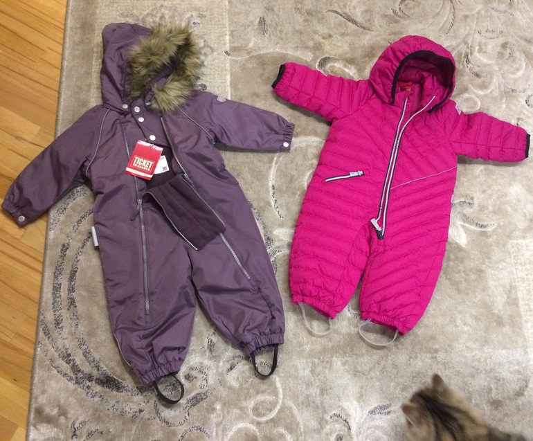 Моя в год носила осенний комбез рейма тек р80(он впритык был).На зиму был раздельный ленне р86 вообще без особого запаса.Весной носили ленне супрафил слитный р80(он очень сильно большемерил) и раздельный комплект рейма р86(карточка норм,полукомбез только только).В 2 года уже р92 и 98.