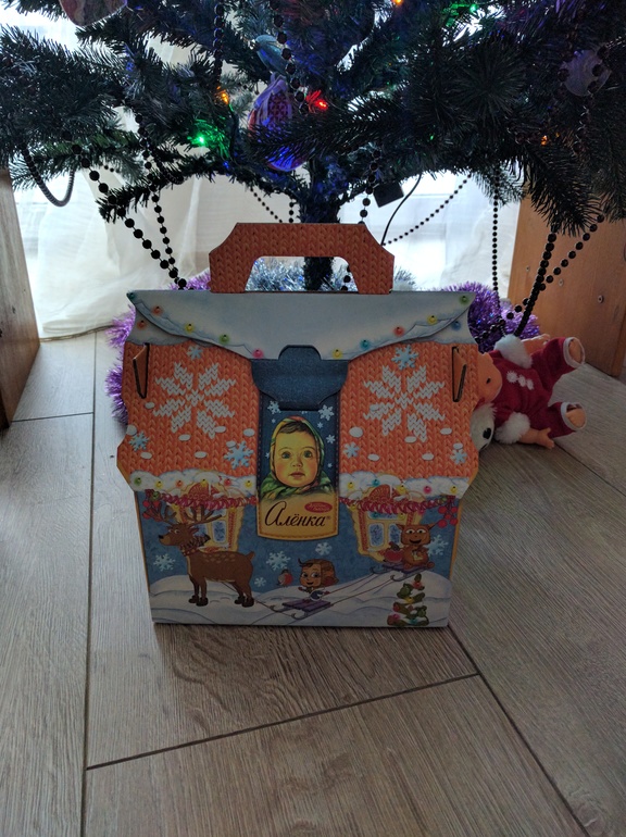 Ну и на НГ еще дедушка один все же заказал сладкий подарок, плюс дали домик с конфетами у мужа на работей