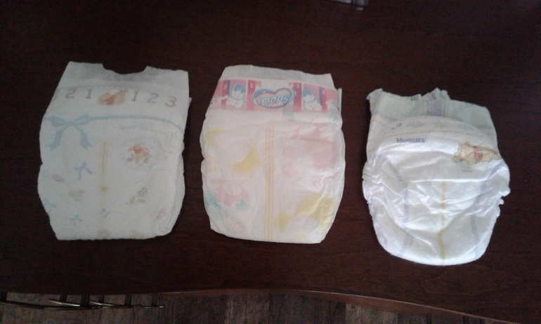 На фото подгузники расположены в таком порядке: Мунни,Мэпси,Хагис: