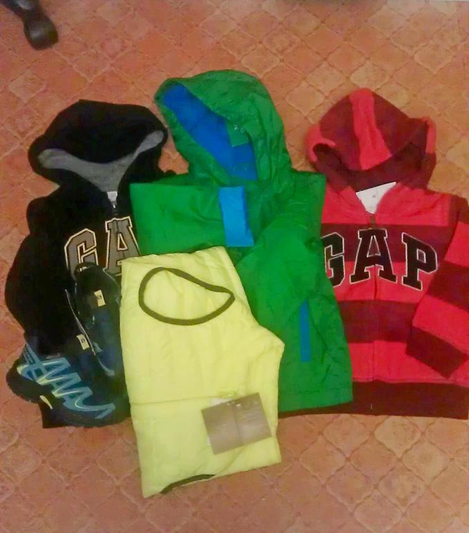 Толстовки Gap 625 руб. красная и 580 черная, курточка Benetton - 1120, жилетка Gap - 720, кроссовки Salomon с гортексом - 1800. Если еще и кэшбэк начислят, вообще красота.